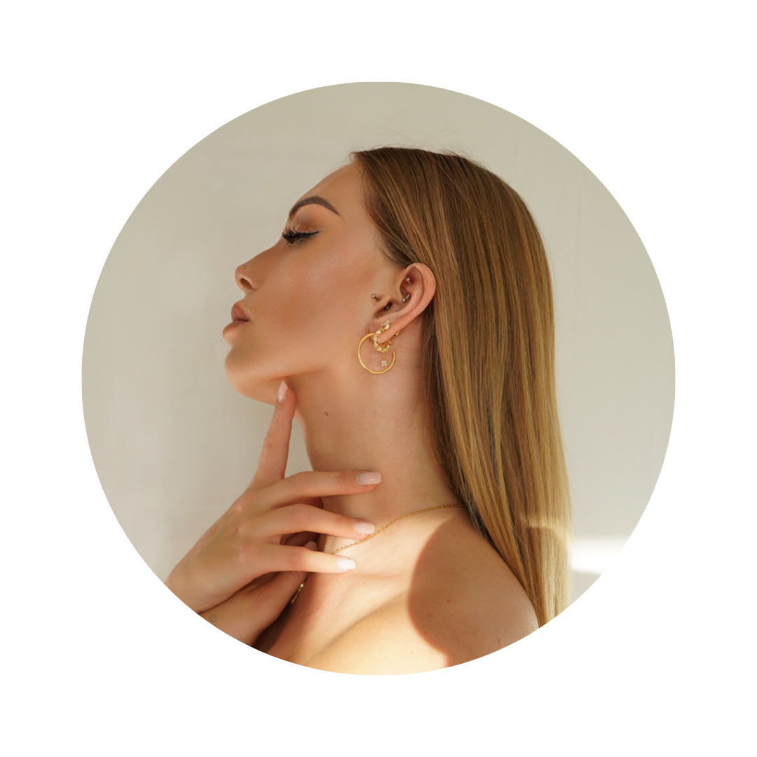 La boucle Blair, directement inspirée de l’univers chic et intemporel de Gossip Girl, associée au piercing Médusa, une des pièces les plus populaires de notre collection.